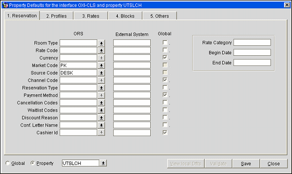 Example: The rate code template in ORS contains rate codes A, B, C. Property FDH selects only rate code A. Property FDH1 selects rate code B and C. This shows that we cannot assume that all values from the global template are selected for all properties, and therefore a validation mechanism is used to verify whether the properties have the global values configured or not.