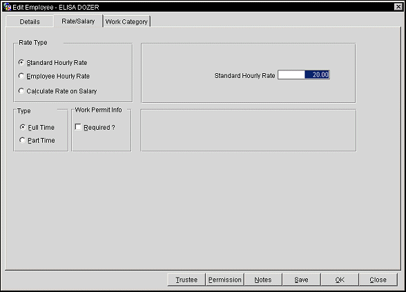Rate Type. Select the Standard Hourly Rate, Employee Hourly Rate, or Calculate Rate on Salary option button to indicate the basis of hourly or salary rate calculation for an employee.