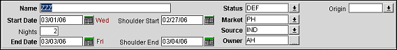 Shoulder Date functionality will depend on OPERA application parameter called SHOULDER DATE. When this is active the on-screen parameter Elastic will display Shoulder Start and End dates on the header.