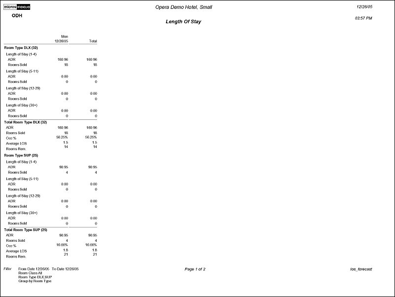 This report displays a Length of Stay (LOS) forecast based on Room Class or Room Type.