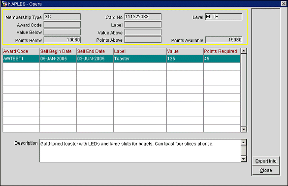 The following information is available in the Award grid. It was entered when the award was created. See Membership Awards.