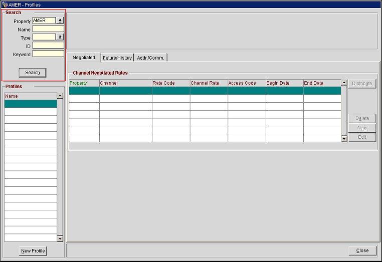 The Search area of the Profiles screen allows users to enter search criteria and narrow their results.