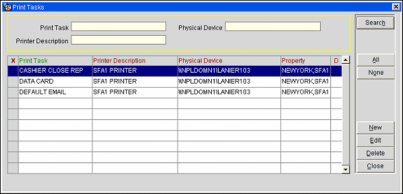 Print Tasks. Allows you to define the print tasks for a specific workstation.