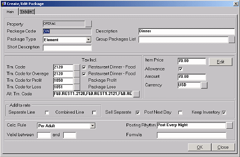 Item Price. This is the cost of the package to the property. The system will reference this amount when posting allowances for the package.