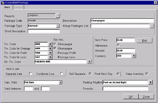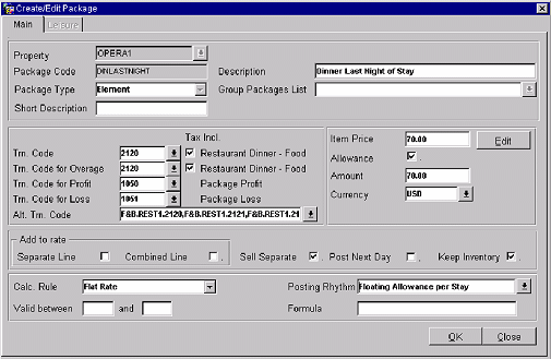 Allowance (Amount). This is the maximum allowance given to the guest for that package. OPERA will refer to both the item price and allowance when posting packages. The system will post a package loss when the consumed amount is larger than the item price but less than the allowance. Once the amount posted is greater than the allowance, then OPERA will charge the extra amount to the guest as an Overage.