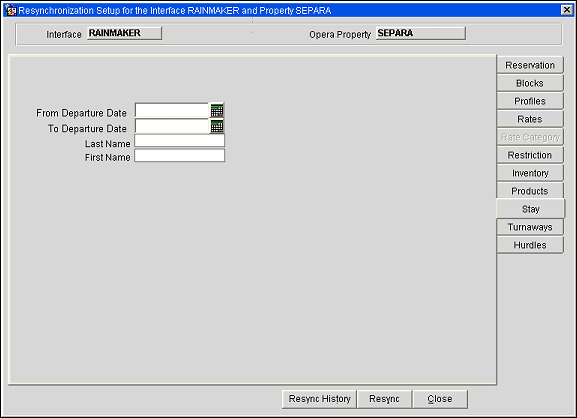 Last Name. Type the specific last name of guest whose stay data shall be resynced.