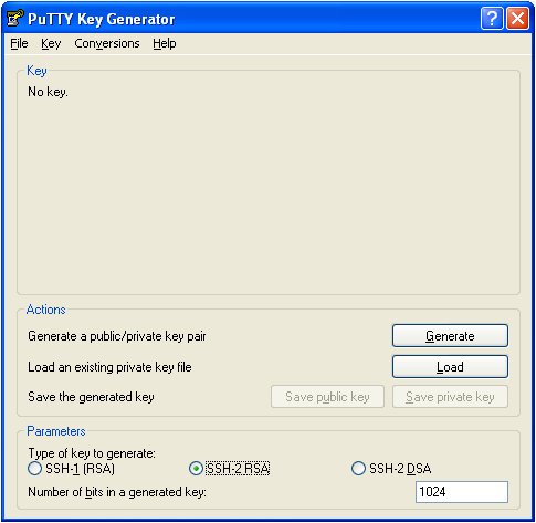 1. When the “puttygen.exe” executable is run, the initial screen looks like the below.