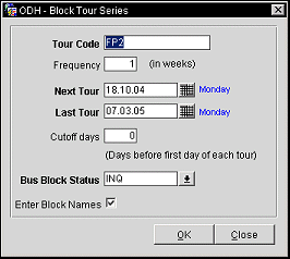 Note: The option Tour Series is hidden when the application parameter Blocks>Auto Assign Sub Block Codes is set to N and/or when the application parameter Blocks>Enforce Block Code Template Length is set to Y.