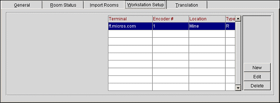 To set up a new workstation, place your cursor on a blank line in the grid, then select the New button. The Workstation Setup - New screen appears. Complete the fields and select the OK button to create a new workstation setup.