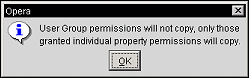 OK. Select to copy the permissions to the selected user for the selected property. When copying a user group that is comprised of another user group, these will not copy as they could contain permissions for multiple properties. The following message prompt will display to alert the user: