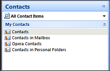 Exchanging information between OPERA and Outlook is called "synchronization" or "synch." The first time you select the Synch button from the Outlook Synch screen OPERA creates three new subfolders in your Outlook Folder List. Under Calendar, OPERA creates the 'OPERA Activities' folder. This is where the Activities shared between OPERA and Outlook will be filed. Under Tasks, OPERA creates 'OPERA Tasks' folder. This is where the ToDo Activities shared between OPERA and Outlook will be filed. Under Contacts, OPERA creates the 'OPERA Contacts' folder. This is where the Contacts shared between OPERA and Outlook will be filed.