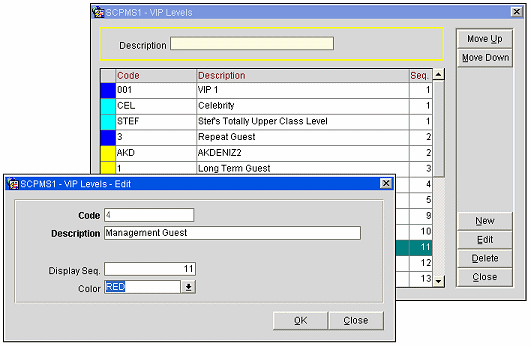 Description. Display the VIP level code description (Regular Guest, Top VIP, Blacklisted).